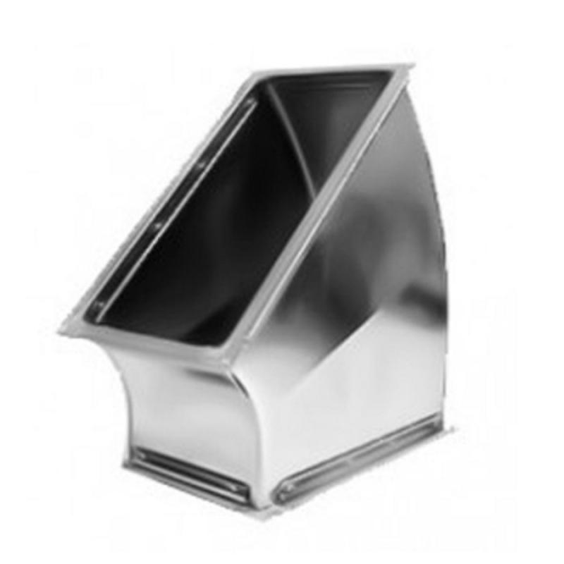 Отводы 45 градусов прямоугольного сечения предназначены для плавного направления системы воздуховодов под углом 45 градусов по горизонтали или вертикали.